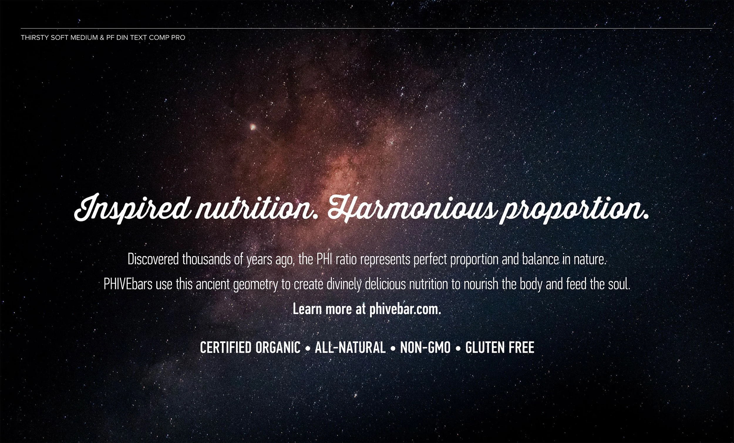 Entering a crowded nutrition bar category, PHIVEbar needed a clear point of differentiation and a brand built for national retail growth. We partnered with the founders to define the “Inspired Nutrition” strategy, then refreshed the logo, identity, packaging, and campaign system to clearly communicate the brand’s nutritional philosophy. The work supported national retail buy-in and helped establish momentum through strong consumer response and sustained sales performance.