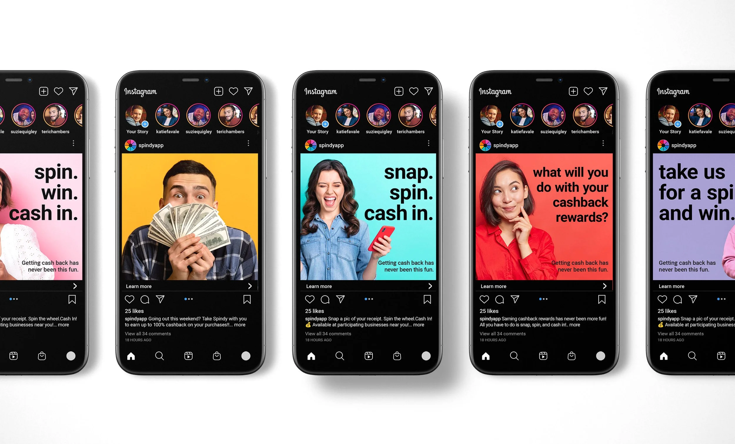 Spindy is a free mobile rewards app from GameIQ that gives you instant cash back every time you shop. No ads, no gimmicks, no joke! Simply snap a picture of your receipt and spin the wheel to win. So when Game IQ needed help bringing this super fun app to life, they asked us to give it a spin. We started with a deep dive into the brand and crafted the strategy “Snap. Spin. Cash in.” Then we built out the brand identity, and experience that captured the fun and excitement of playing and winning across multiple channels and touch-points.